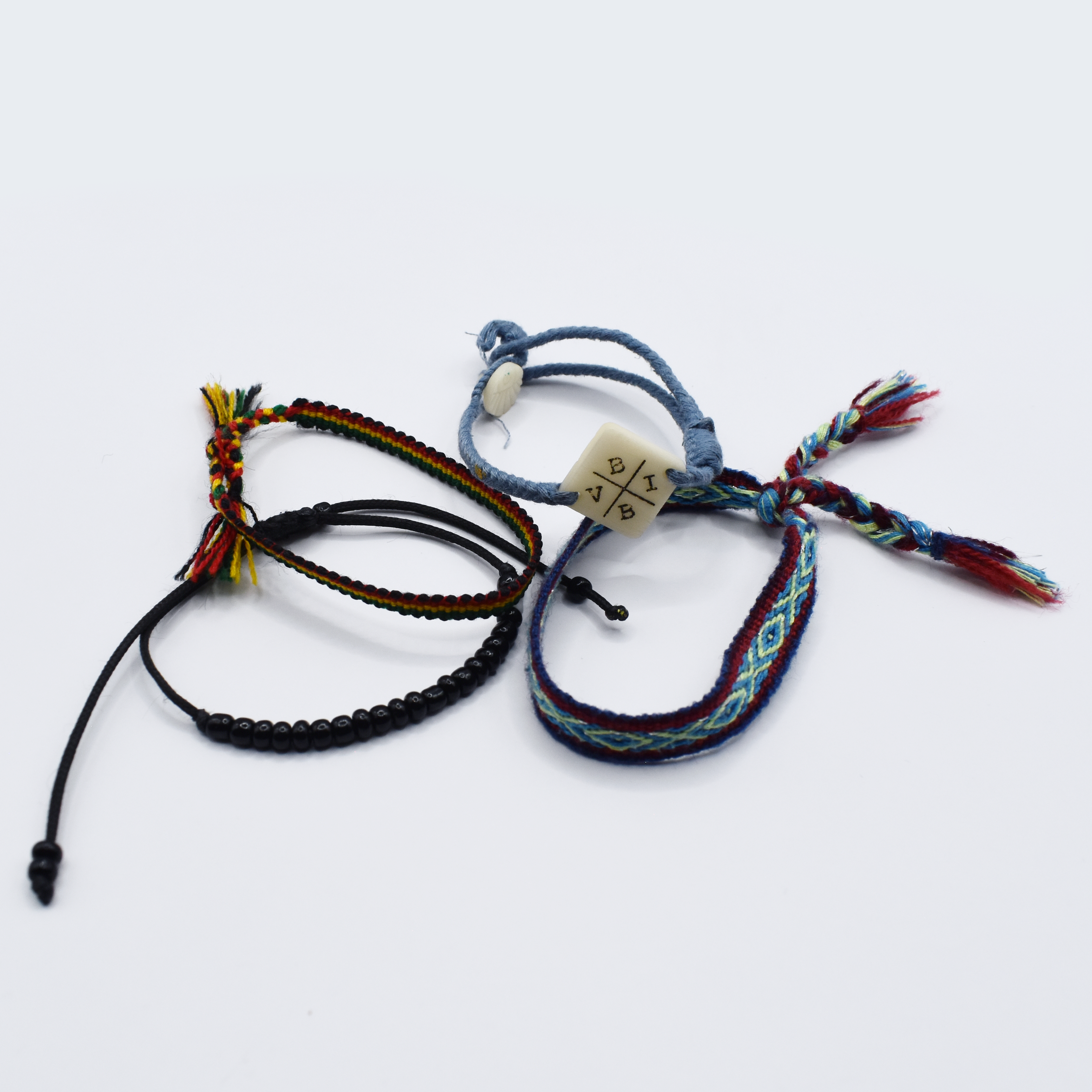 A set of four bracelets I wear every day, and rarely take them off. Colorful and mostly made of hand-knotted thread and beads, they have become a natural part of me, each one carrying its own special meaning and story.