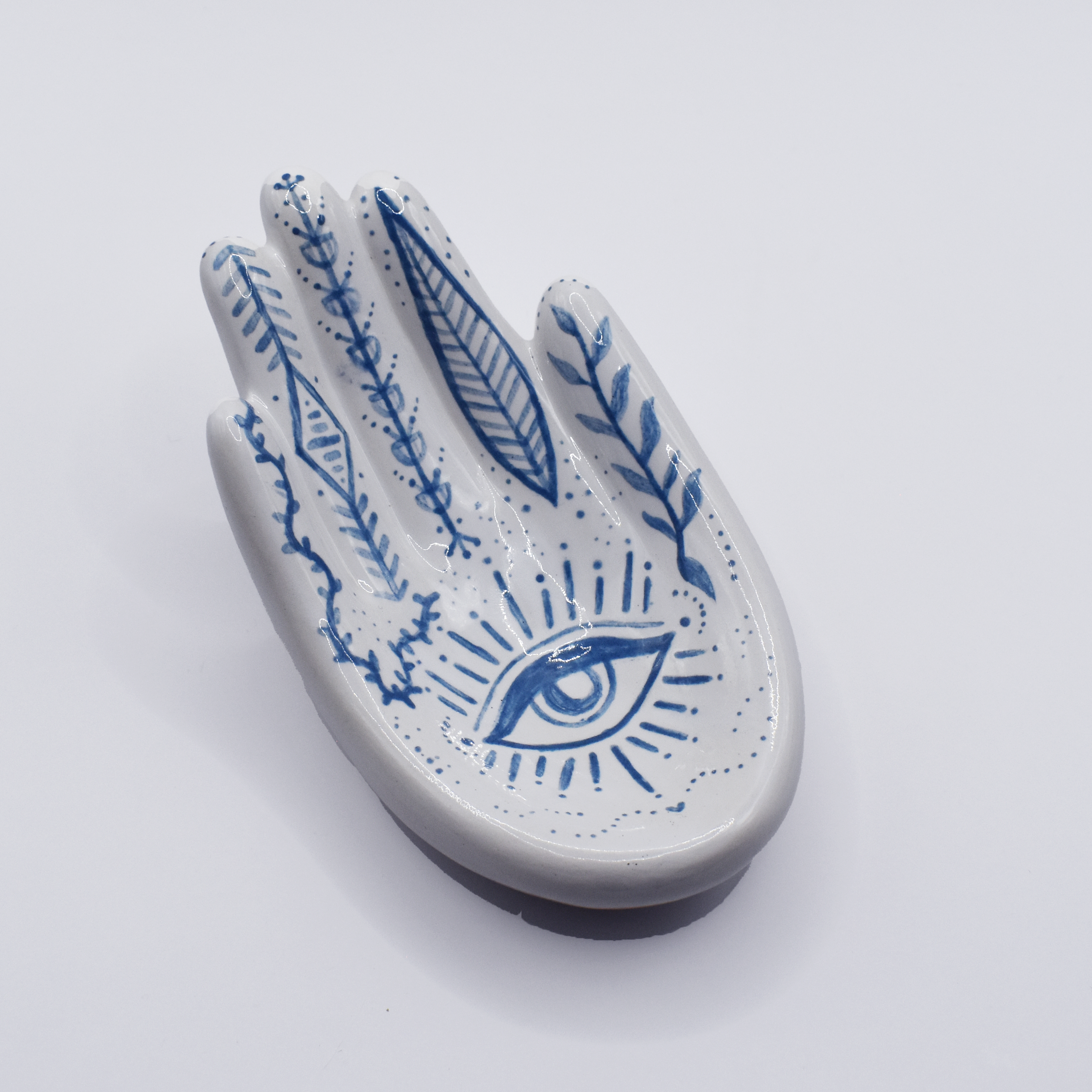 One Saturday afternoon, my friend Susanna and I decided to spend the day painting at Hotplate, our go-to creative escape. It’s always a fun and relaxing time, and I wanted to make something practical for myself. I needed a place to keep my rings, so this hand-shaped dish felt like the perfect project. Inspired by the symbolism of the Hamsa hand, I added my own artistic touch to create a design that blends with my personal style.